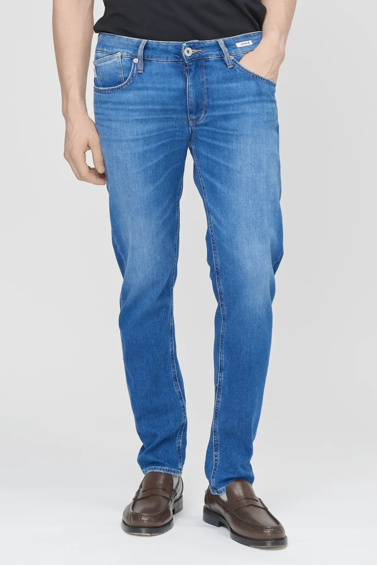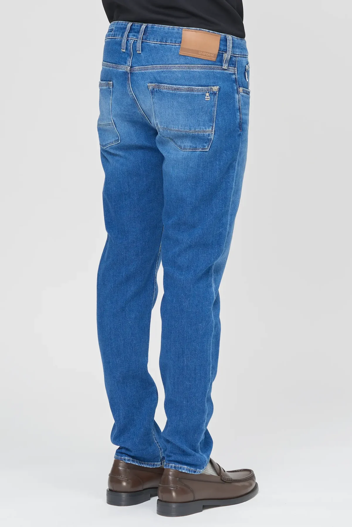 Five-pocket jeans with a slim fit and normal crotch in Mid Blue Denim, designed for those seeking a slim yet comfortable fit. The Dean Slim Fit Normal Crotch features a balance of contemporary looks and everyday practicality, with an ergonomic fit that enhances the silhouette without being constricting.