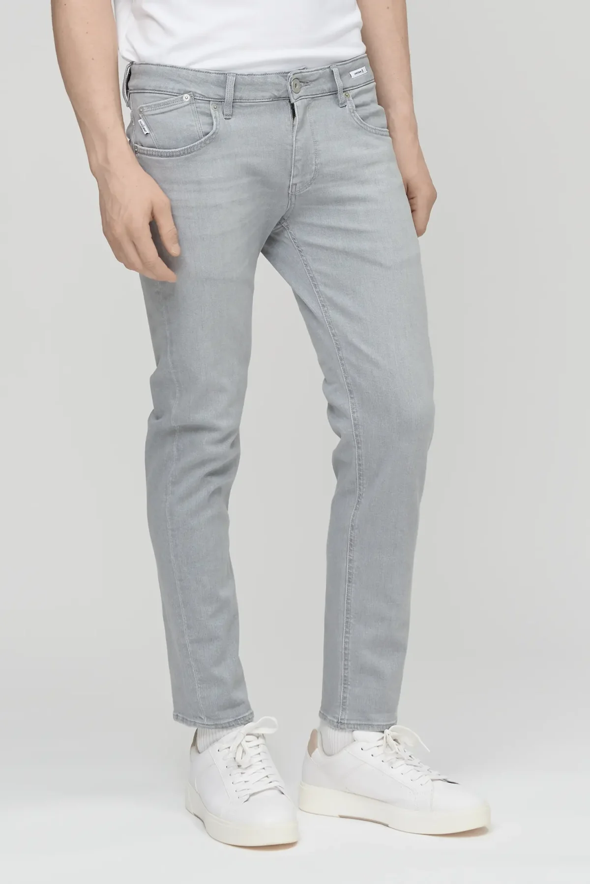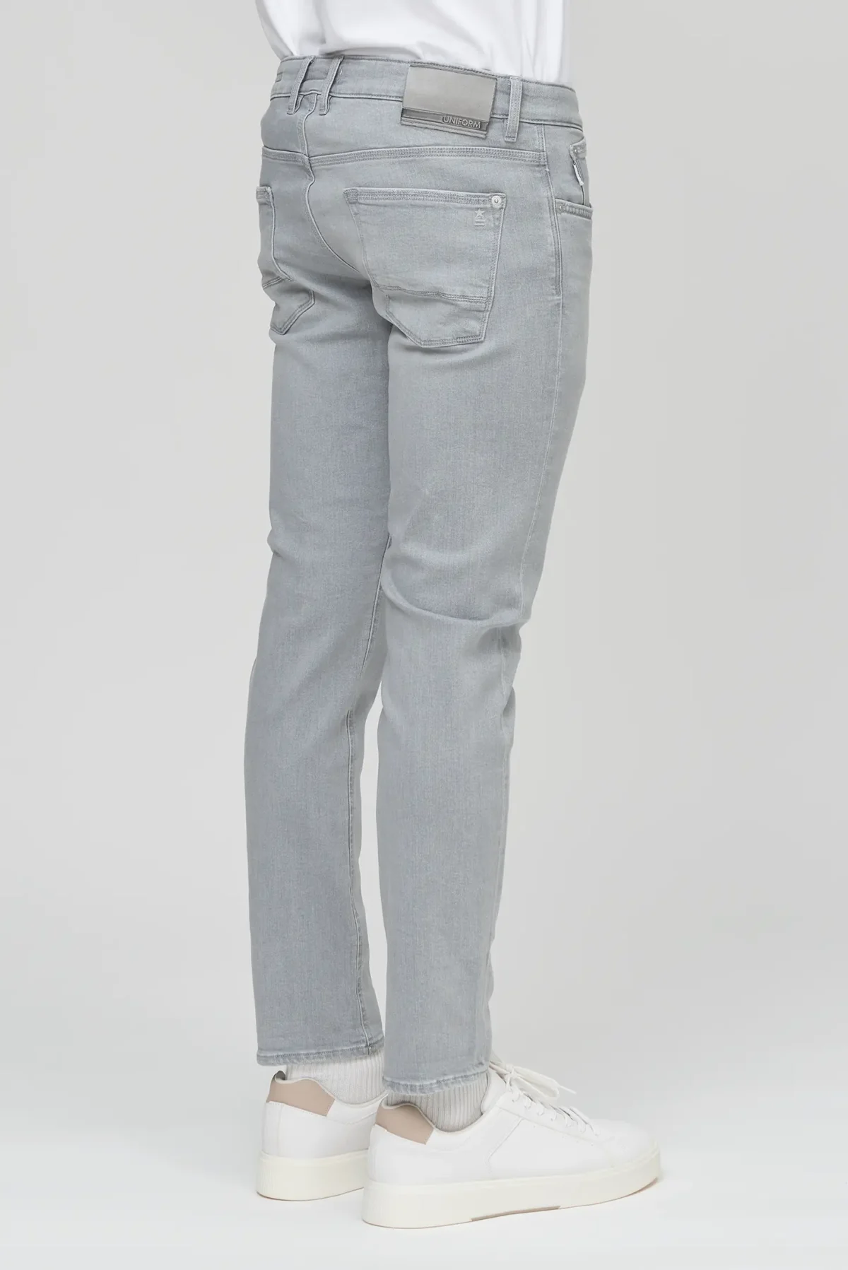 Five-pocket jeans with a slim fit and normal crotch in Grey Denim, designed for those seeking a slim yet comfortable fit. The Dean Slim Fit Normal Crotch features a balance of contemporary looks and everyday practicality, with an ergonomic fit that enhances the silhouette without being constricting.