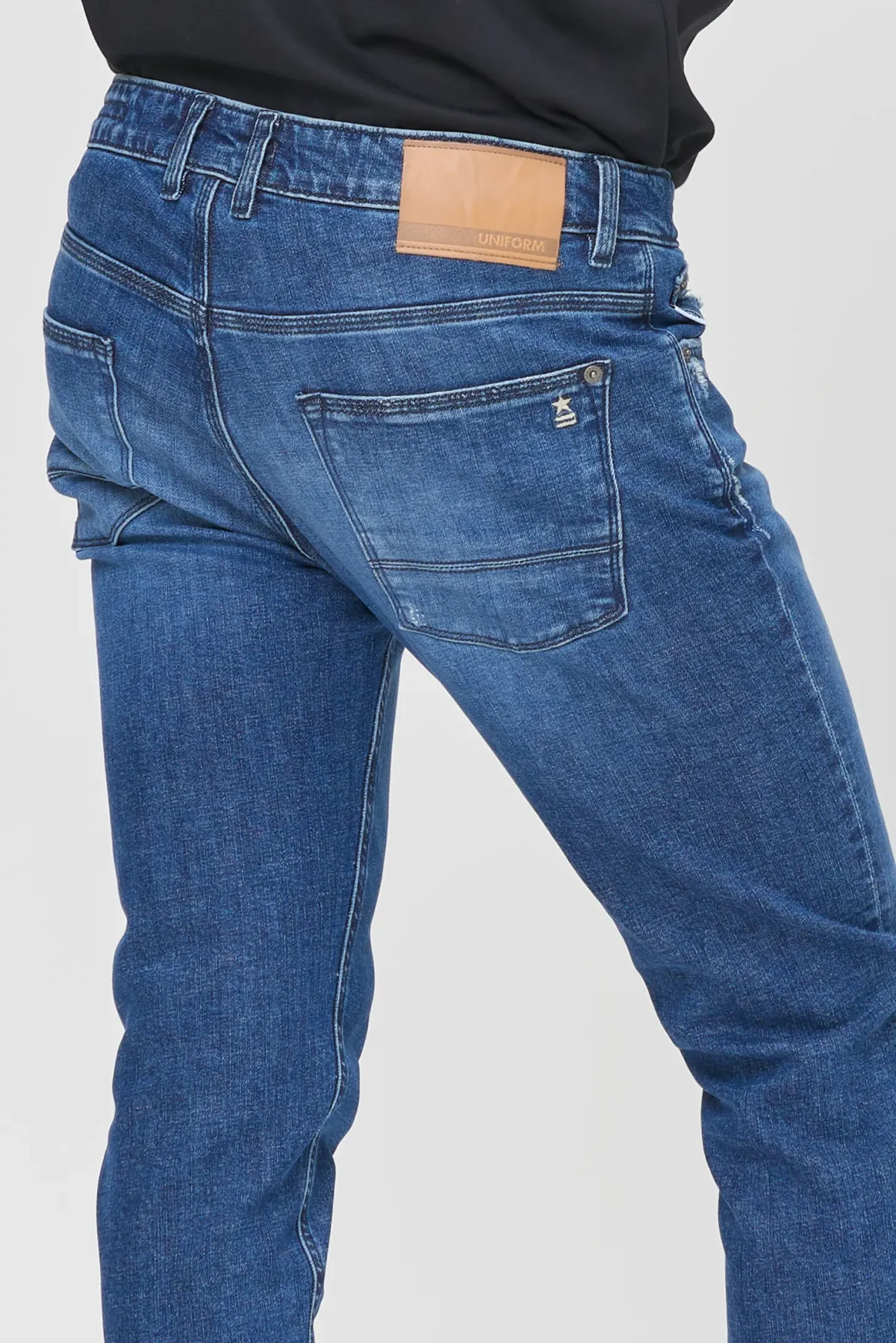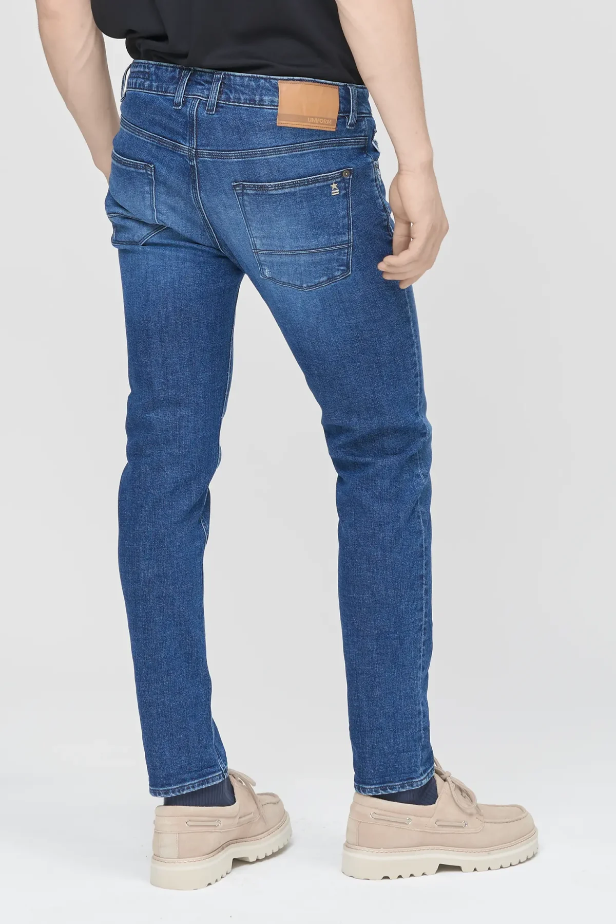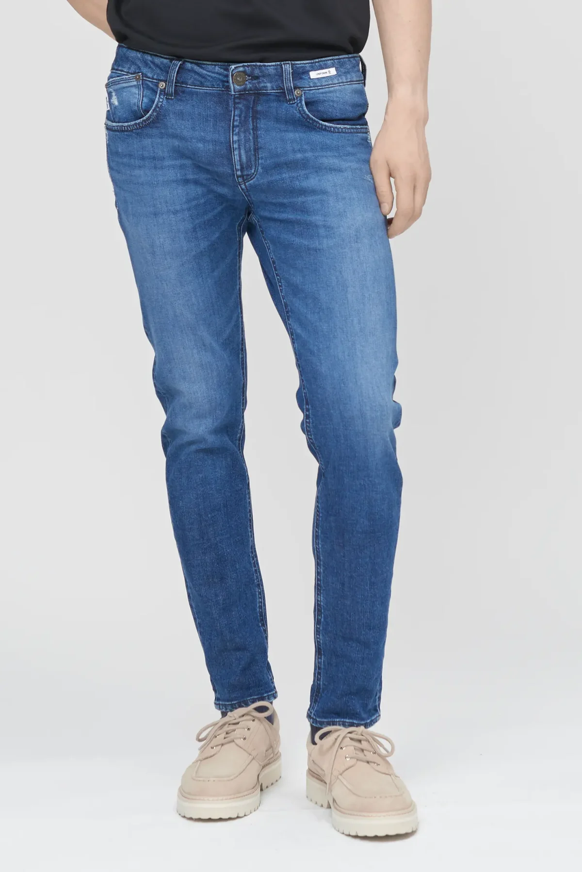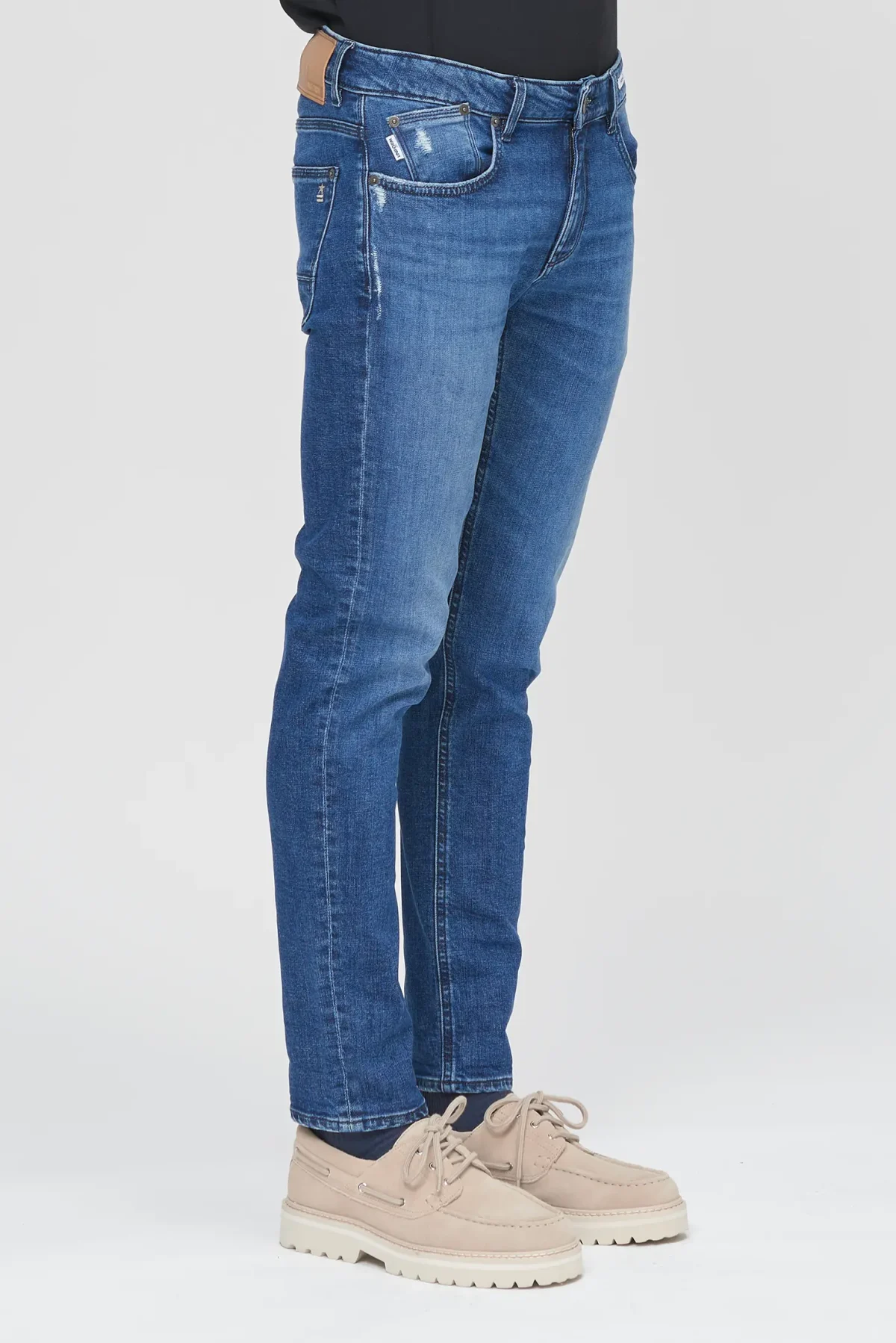Five-pocket jeans with a slim fit and normal crotch in Mid Blue Denim, designed for those seeking a slim yet comfortable fit. The Dean Slim Fit Normal Crotch features a balance of contemporary looks and everyday practicality, with an ergonomic fit that enhances the silhouette without being constricting.