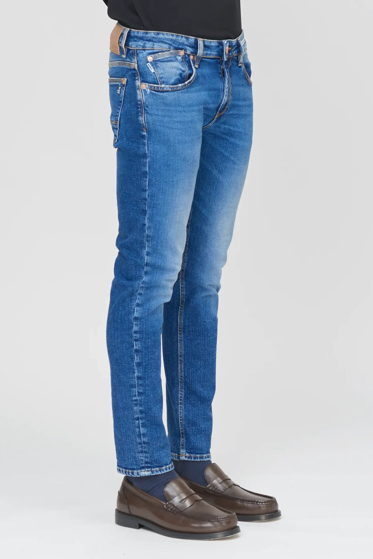 Five-pocket jeans with a slim fit and normal crotch in Mid Blue Denim, designed for those seeking a slim yet comfortable fit. The Dean Slim Fit Normal Crotch features a balance of contemporary looks and everyday practicality, with an ergonomic fit that enhances the silhouette without being constricting.