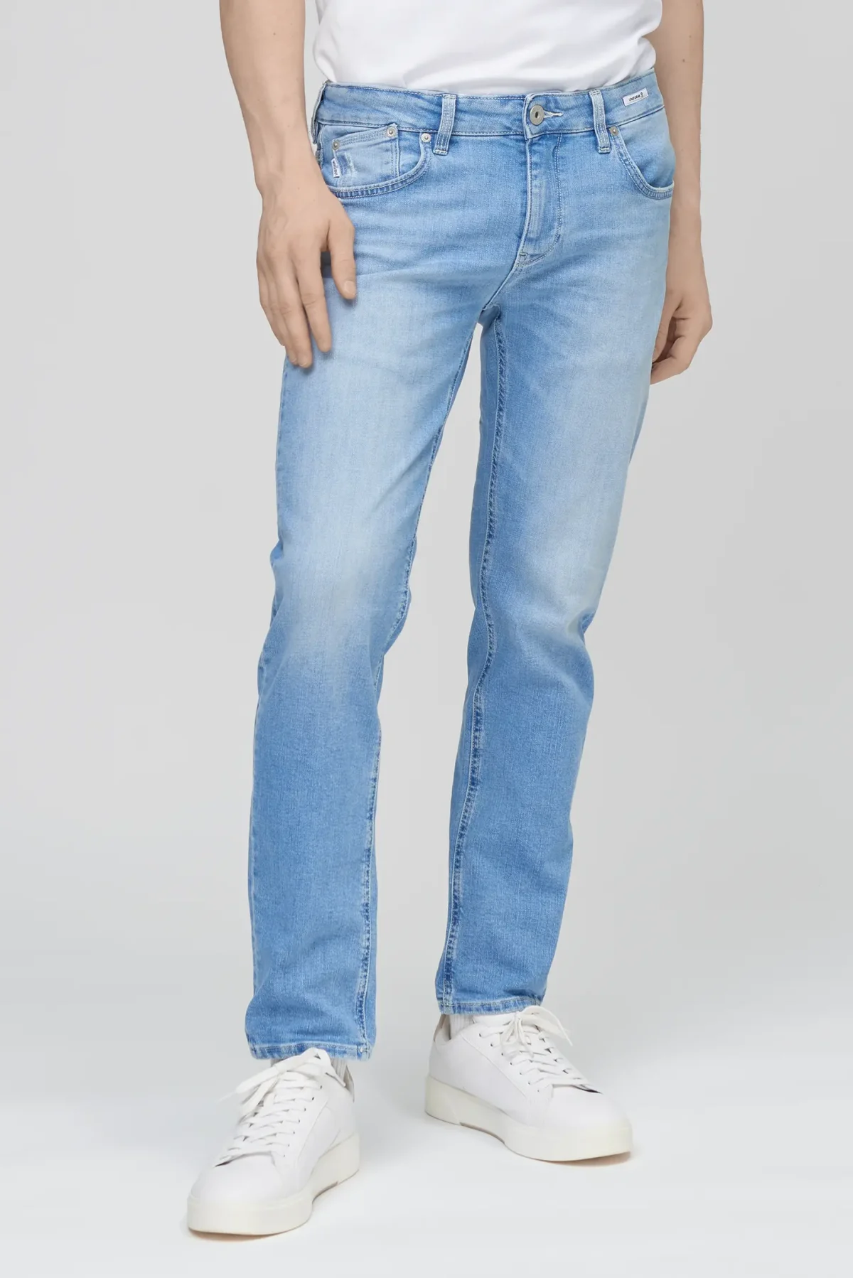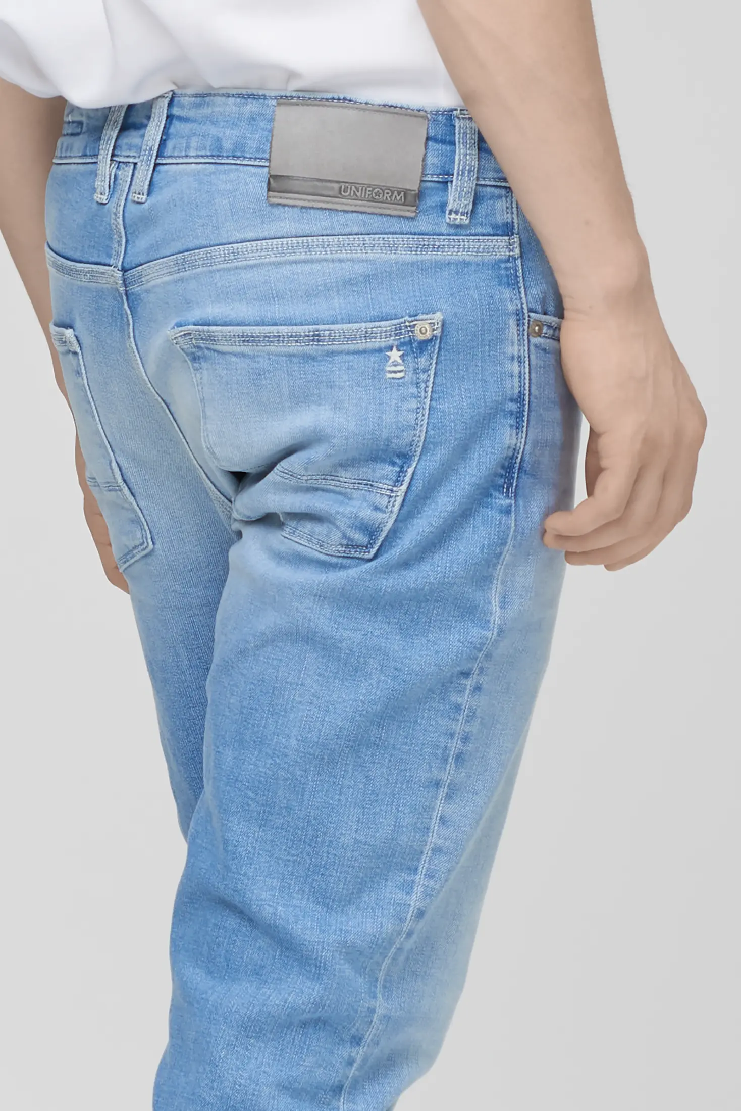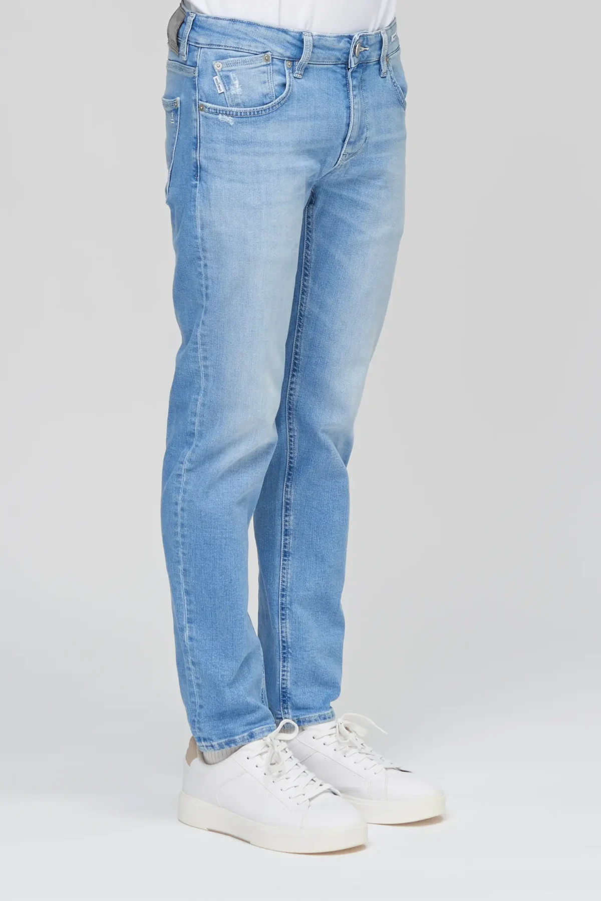 Five-pocket jeans with a slim fit and normal crotch in Light Blue Denim, designed for those seeking a slim yet comfortable fit. The Dean Slim Fit Normal Crotch features a balance of contemporary looks and everyday practicality, with an ergonomic fit that enhances the silhouette without being constricting.