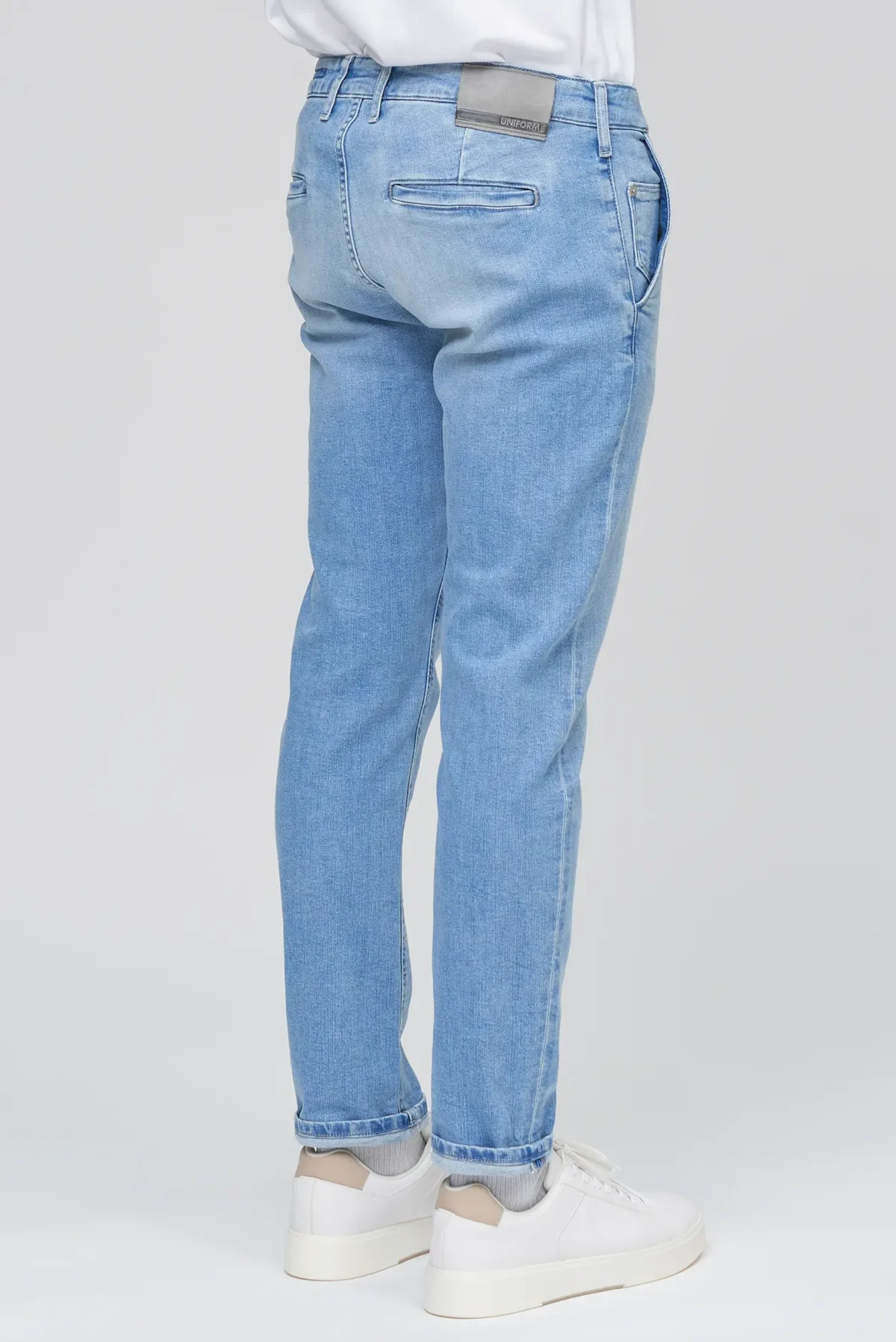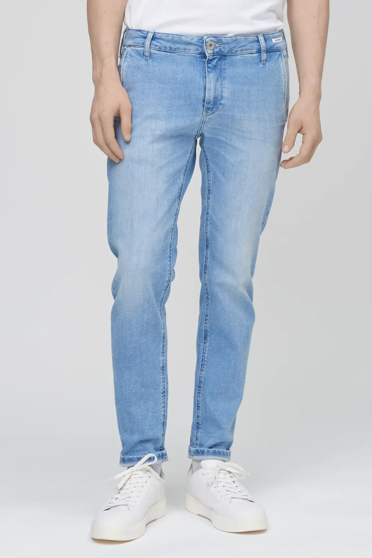 Skinny-fit five-pocket jeans in Light Blue Denim with classic construction and essential finishes. The New Denver Skinny Fit features a slim, fitted silhouette with a regular waist height and narrow bottom. Ideal for daily urban use, it stands out for its choice of quality materials and stable fit over time.